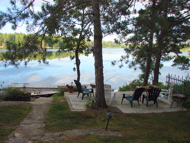 Deck chairs by Pine Lake, near Gravenhurst, Muskoka, Ontario