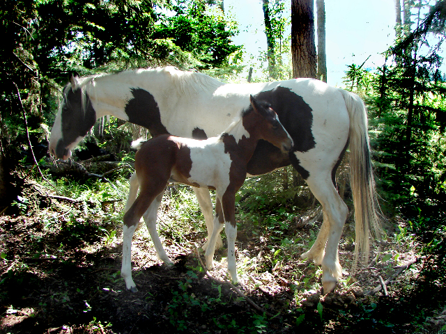 Hide in plain sight Part of a small herd in a wooded area near Thorsby, Alberta, this mother and foal blend as one. |